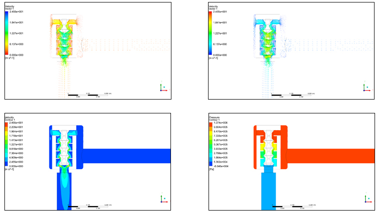 | 高壓差多段式閥芯型角閥AC400 4” x2”ANSI 2500# CFD分析圖 | |